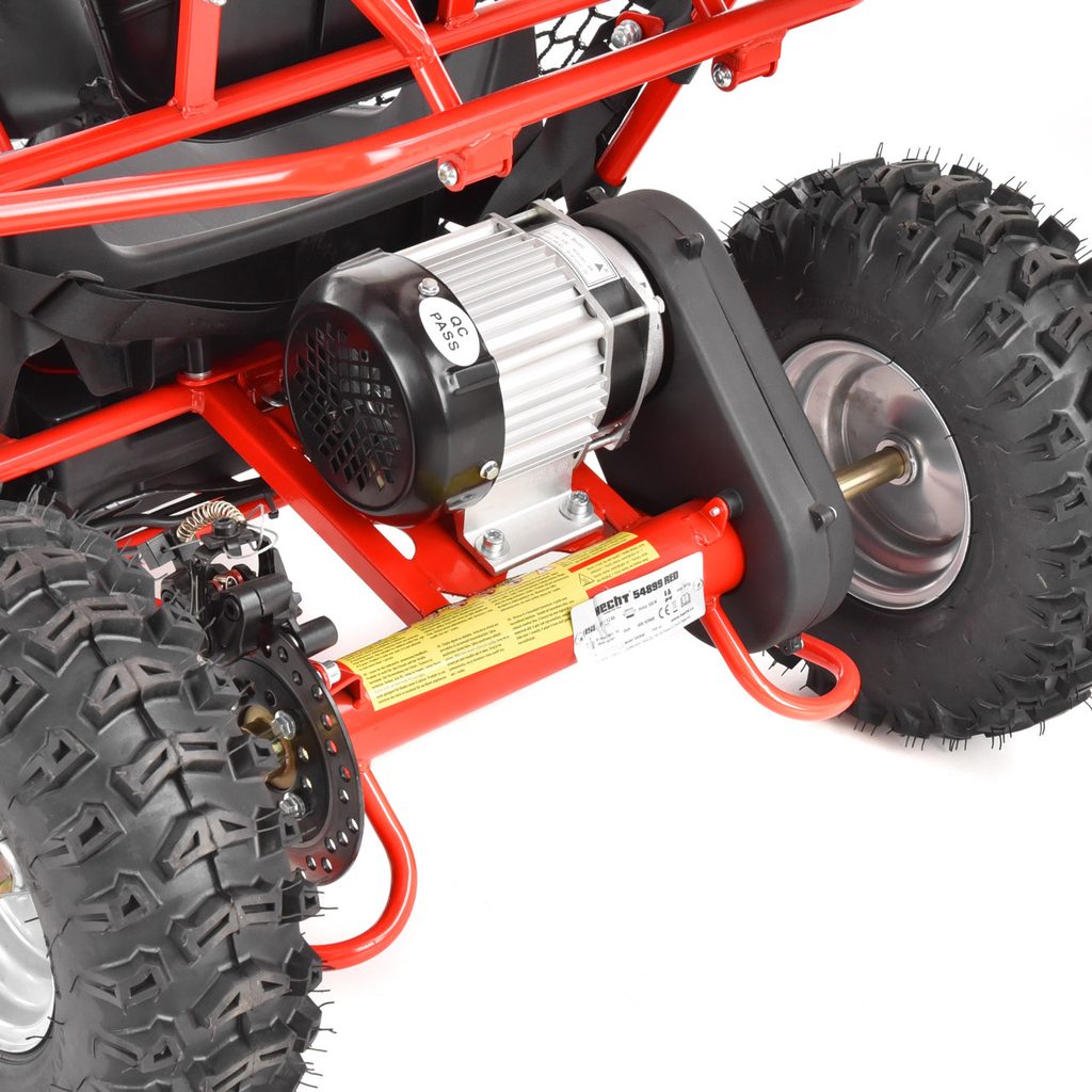 Accu buggy with metal frame. Speed up to 30 km / h. Electric engine 500 W. Battery 36 V /12 Ah. Maximum weight capacity: 54 kg. The seat is equipped with a safety seat belt. The seat can be adjusted to the size of the driver.