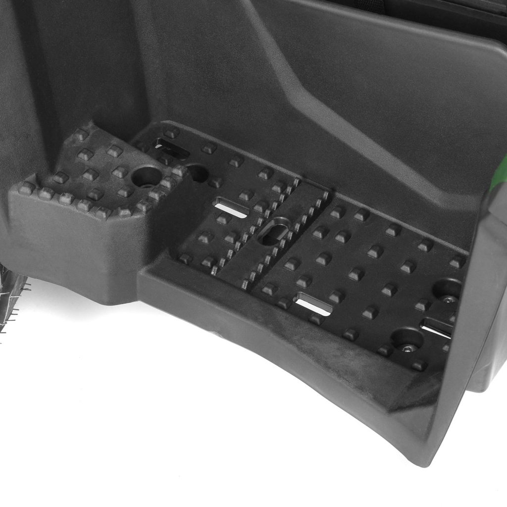 The calculated range is 54 km on a single battery charge. The real-world range at an average speed of 24.5 km/h with a 70 kg load is approximately 39 km on a single charge. The LED display shows you information about current speed and battery status. The quad bike is equipped with LED lights, which ensure safe riding even at night or in reduced visibility.