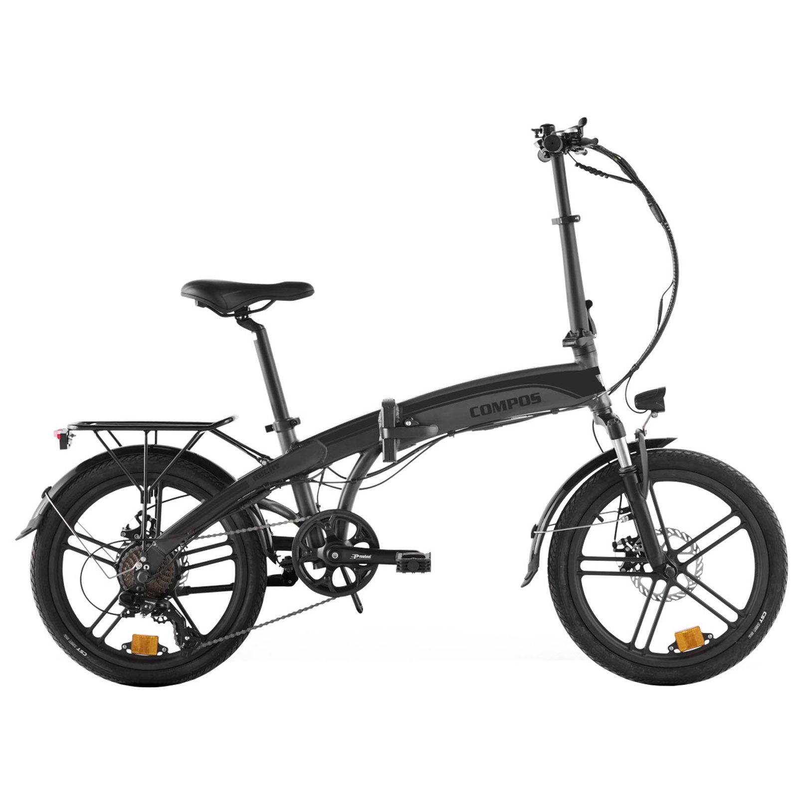 E-bike is not only a sports tool, but also a unique means of transport. You will appreciate the HECHT COMPOS folding urban electric bike when riding around town, but also on cycling trips. You can conveniently pack this "jigsaw" into the trunk of your car or caravan - for a short trip or even a whole holiday. However, the HECHT COMPOS bike is designed primarily for urban traffic, where you can easily avoid traffic jams and usually arrive at your destination much more faster than if you were travelling by car or public transport. The bike can be quickly folded in a few movements, so it can easily fit into a lift and won't get in the way in the office or apartment. You don't even have to deal with parking problems. No more problems with parking meters or paid parking zones in the centre of big cities.