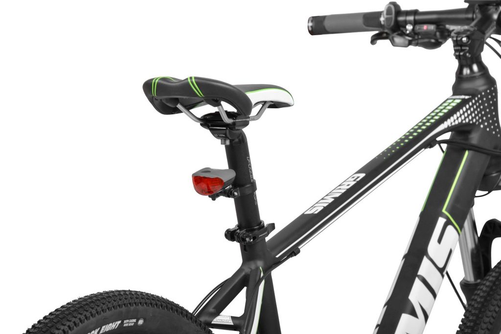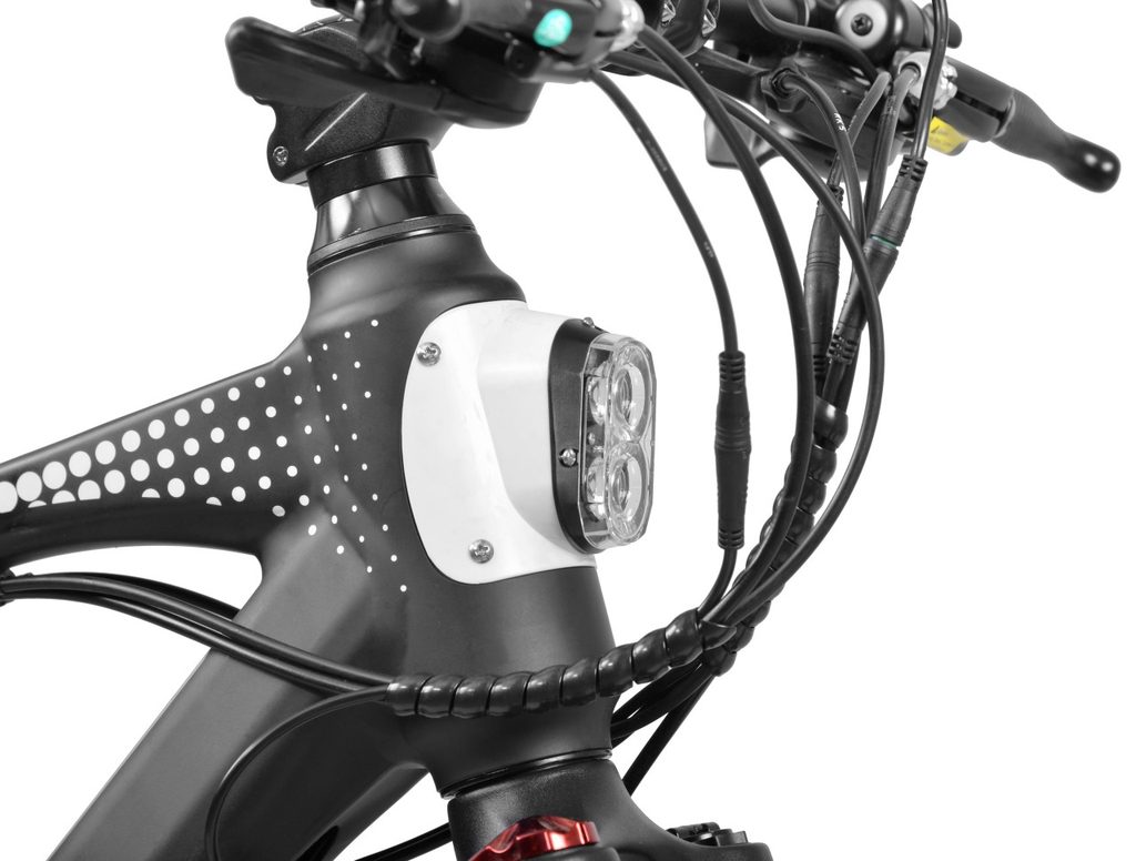 The front light consists of a pair of highly illuminated LEDs. The headlight is battery-powered, but thanks to the use of LEDs it consumes almost negligible energy. Under the seat is a red tail light that is powered by its own integrated battery.