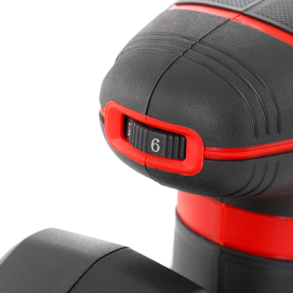 The sander is equipped with variable power settings, allowing you to adjust the speed to suit specific materials. The ergonomic handle and low weight of 2kg ensure comfortable and safe operation. The package also includes a plastic dust container that helps keep the work surface clean.