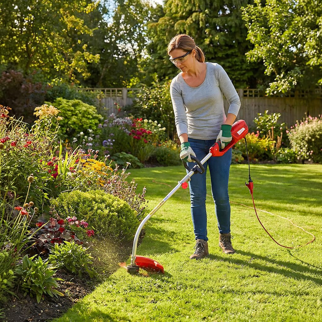 The trimmer is powered from a standard mains supply of 230 V / 50 Hz, which ensures stable performance without the need for battery recharging. The 37 cm working width enables quick coverage of larger areas whilst also allowing precise cutting in places where a conventional lawnmower cannot reach. Cutting is performed by a string head which uses durable nylon string suitable for regular garden maintenance.