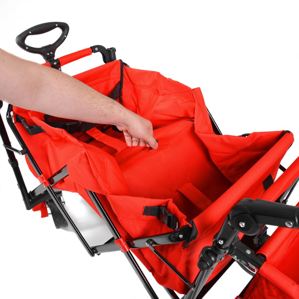 The cart is designed to be easily foldable, making it easy to store and transport. Large wheels (5 / 20 cm) ensure stability and a comfortable ride even on uneven terrain. This cart is a great helper for family trips, park walks, or even shopping.