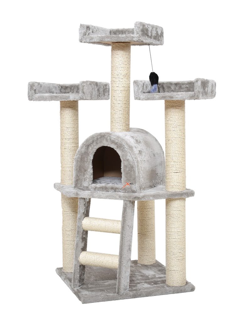 Cat scratcher - dimensions (L x W x H): 50 x 50 x 115 cm. Made of plush and sisal rope.