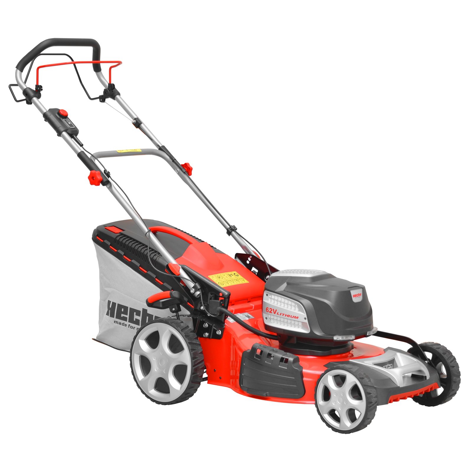 Cordless accu lawn mower with 51 cm cutting width. Voltage 62 V. Battery capacity 2.5 or 4 Ah. Basket capacity 60 l. Patented wheel design with running gear.