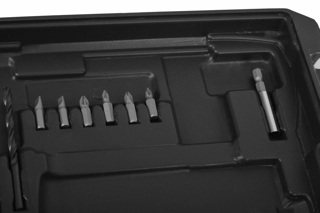 Cordless screwdriver / drill - 20 volt. Li-ion battery - 1,5 Ah. 2 speeds. Quick charger (1h), 2x battery, plastic carrying case, 6x drill bits and magnetic bit holder included.