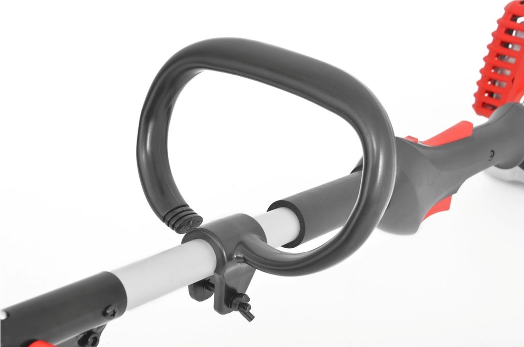 Petrol powered grass trimer equipped with string head and shoulder belt. Powered by 2 stroke 30 cm3 engine. Separable shaft. Package also contains a strap, trimmer head, metal blade, tools for blade and trimmer head replacement and measuring dose for mixing gasoline and oil.