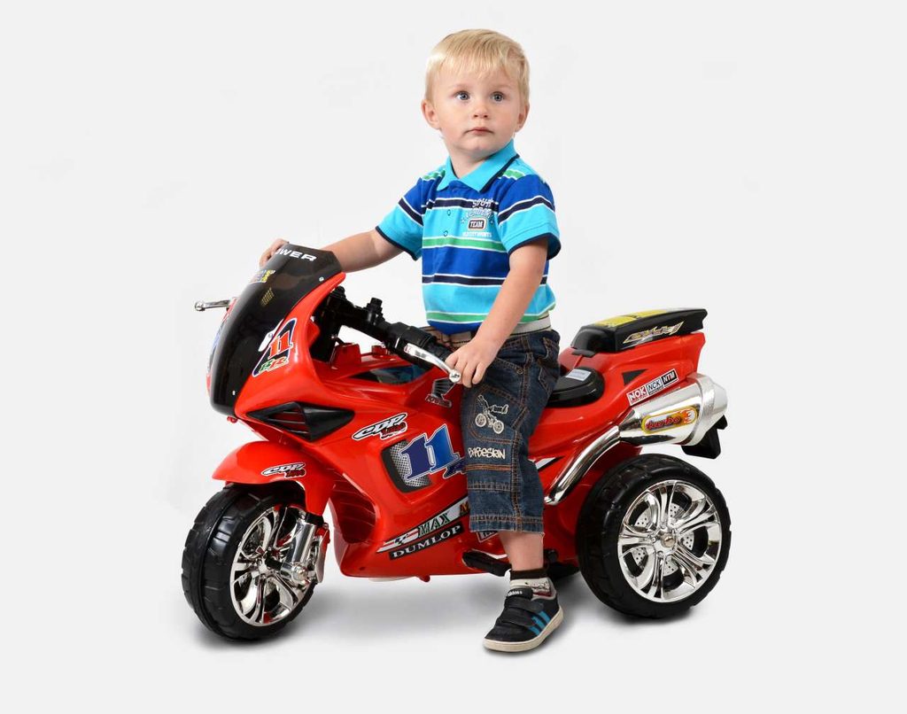 Battery-powered bike for kids. Weight 8,2 kg. 6 V battery. Suitable for children from 3 to 8 years. Maximum load 20 kg. Sound effects, reverse.