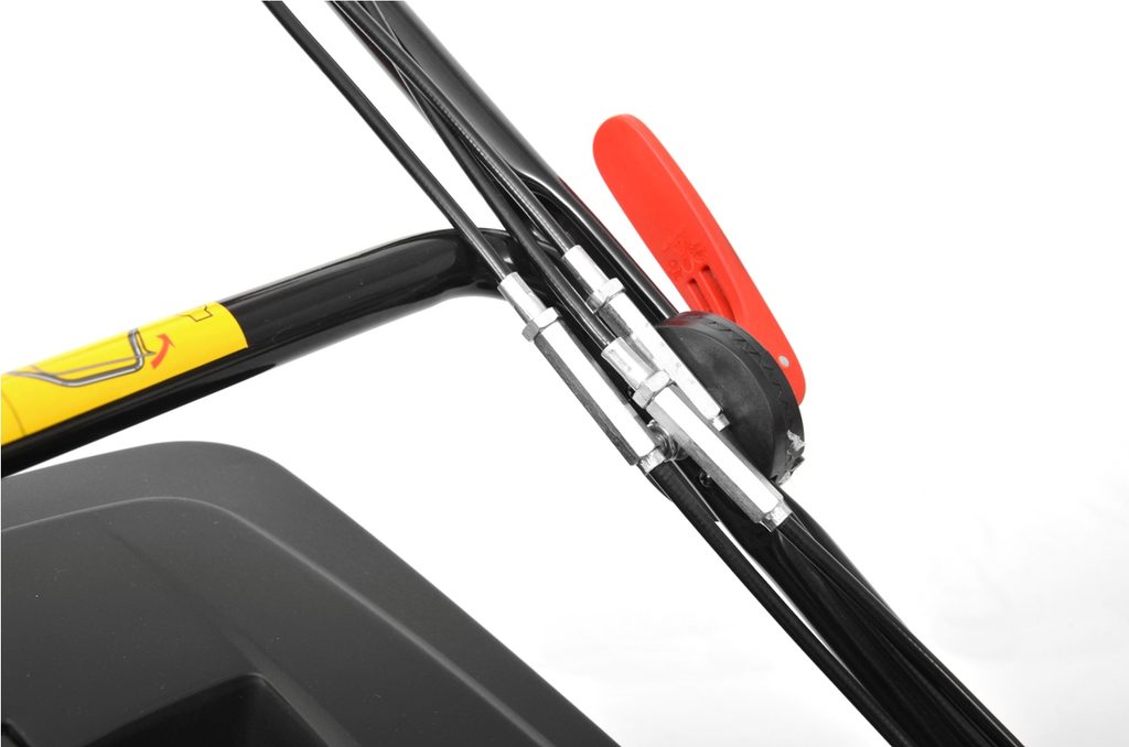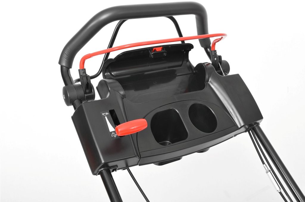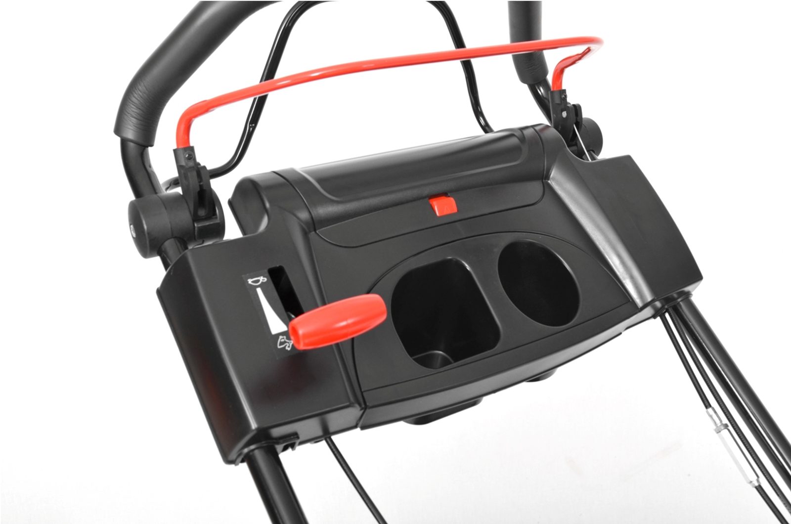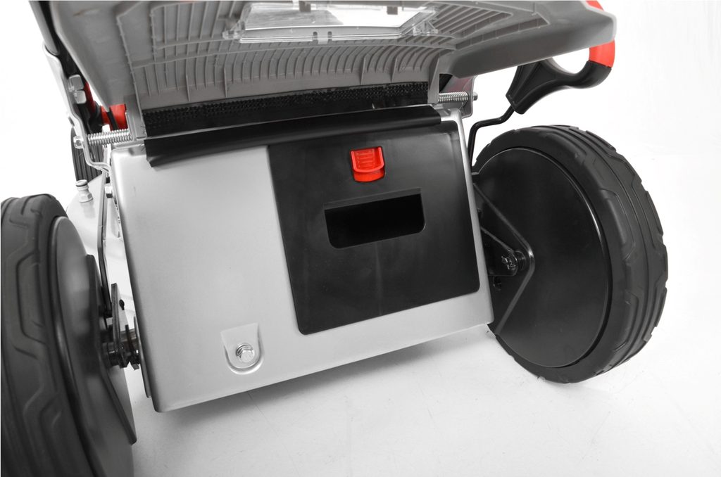 Součástí sekačky je i kryt bočního výhozu a mulčovací klín, kterými lze snadno a rychle bez použití nářadí změnit funkci sekačky. V základním režimu je prováděn odhoz trávy do velkého 60 l koše. Kapacita koše umožní plynulé sekání bez častého vyprazdňování koše.