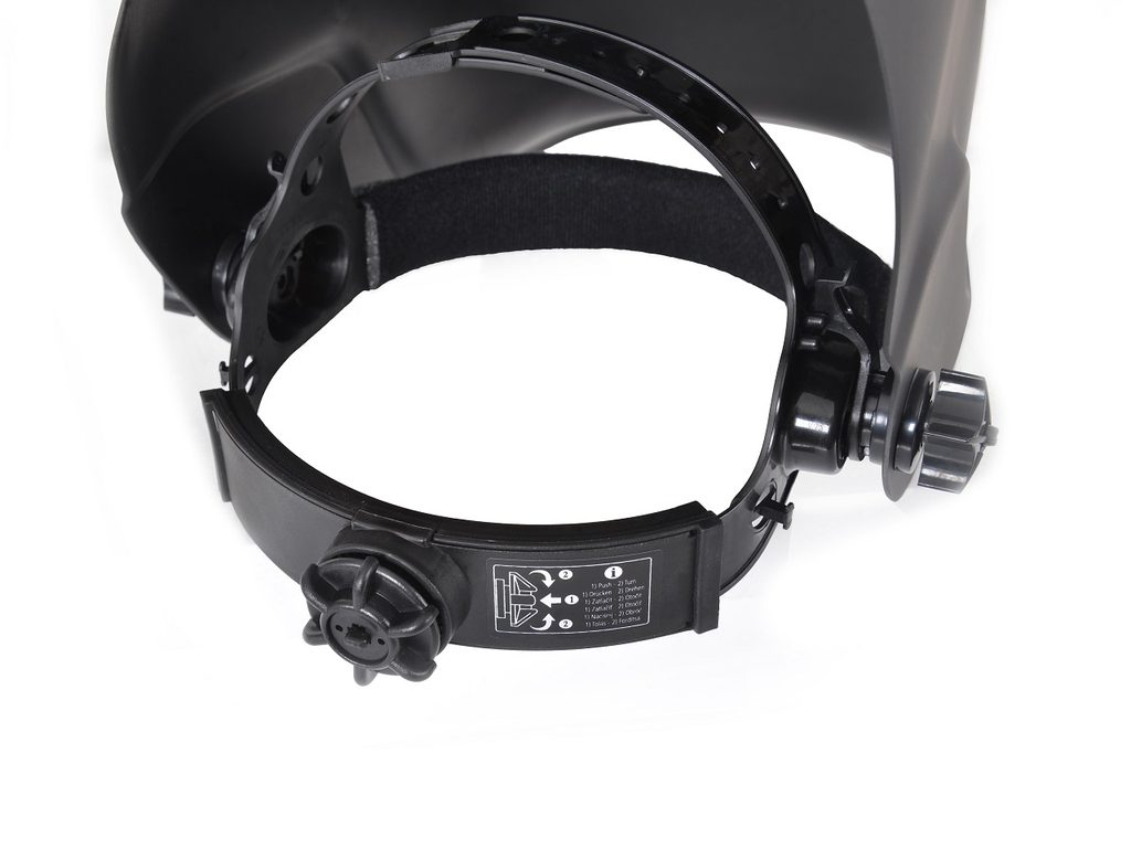 Welding shield. Visor dimensions 100 x 50 mm. Response time <= 1/25000 s. Weight 0,49 kg. Solar cells + replaceable Lithium battery. Automatic ON/OFF. Low battery alarm.
