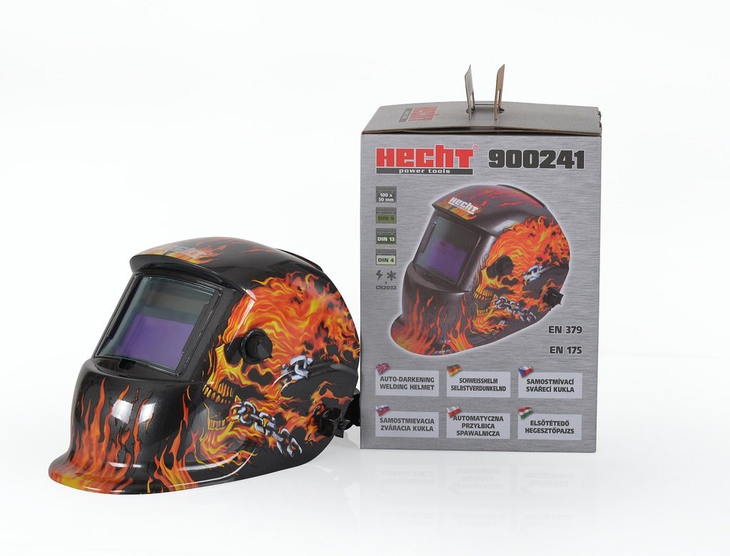 Welding shield. Visor dimensions 100 x 50 mm. Response time <= 1/25000 s. Weight 0,49 kg. Solar cells + replaceable Lithium battery. Automatic ON/OFF. Low battery alarm.