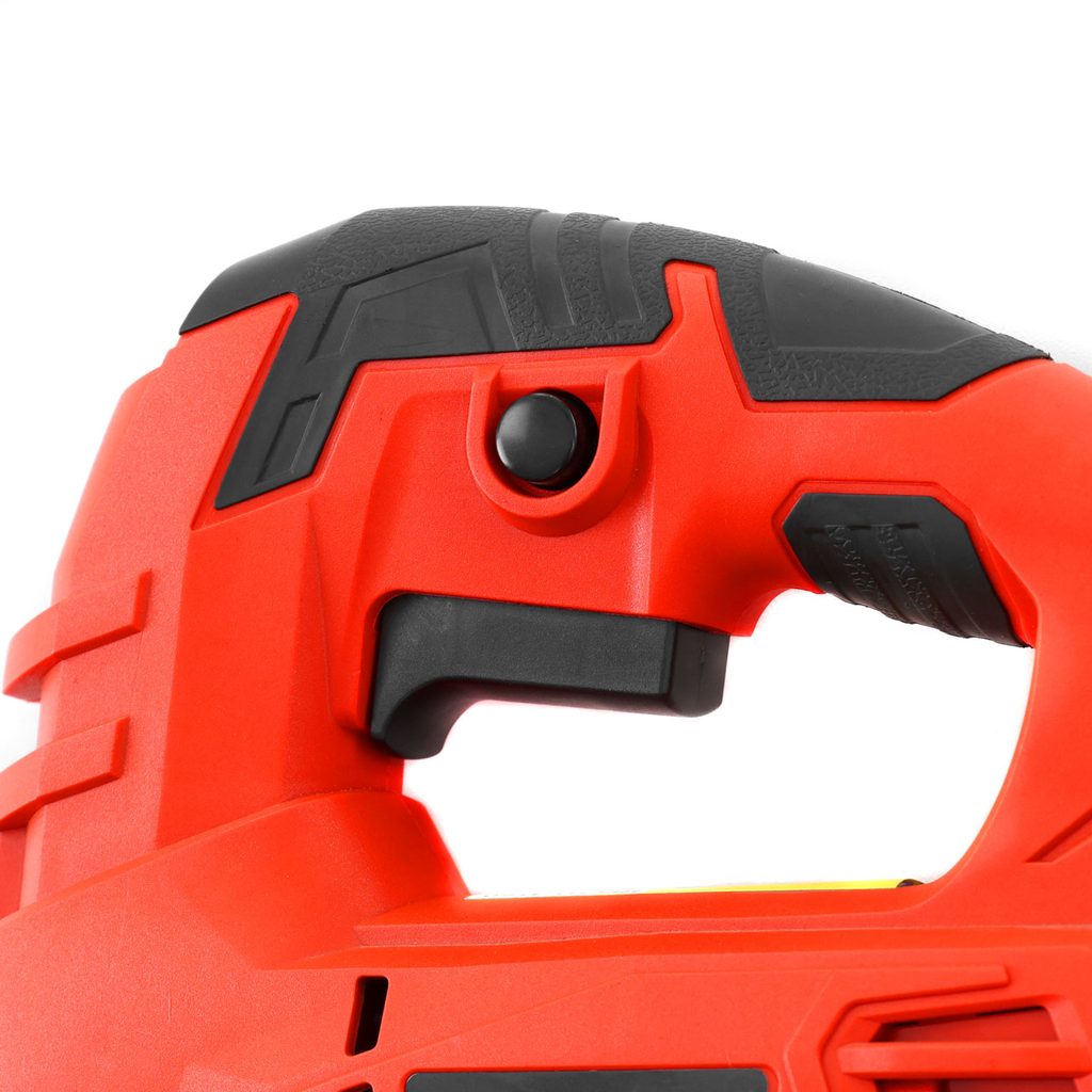 - Compact jig saw with ergonomic handle and removable dust adapter
