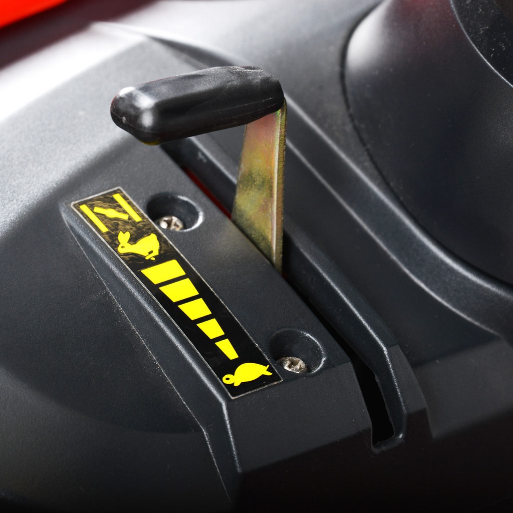 Garden tractor with a 4 stroke HECHT OHV engine. Centrally adjustable cutting height. Recommended mowing area 3000 - 4000 m2. Ball bearings. Only side ejection.