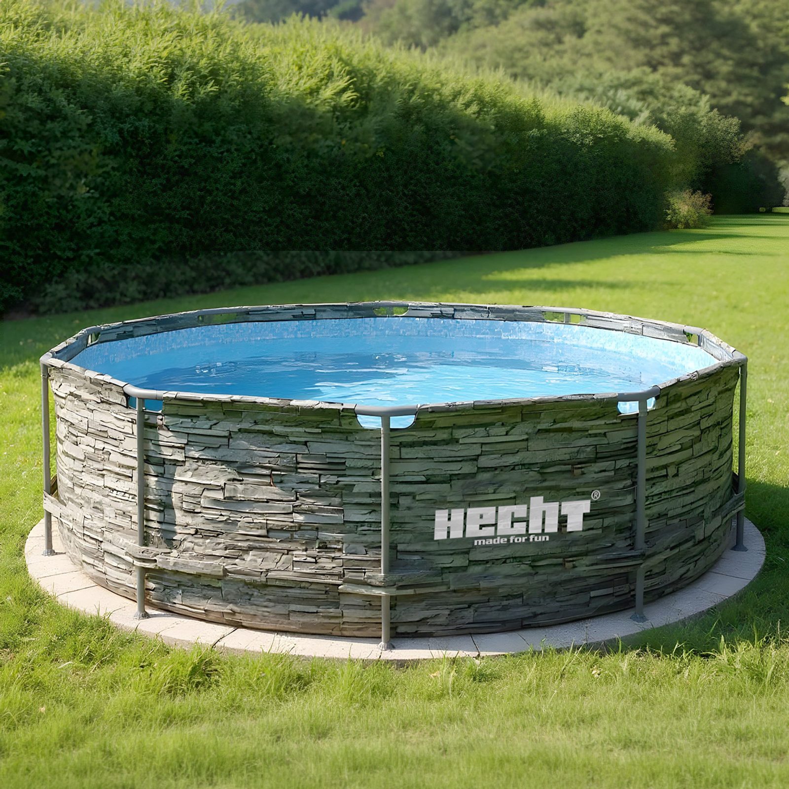 Bazén HECHT 3710 BLUESEA představuje ideální řešení pro každého, kdo hledá trvanlivé a esteticky vydařené letní osvěžení. Tento model o průměru 366 cm a hloubce 100 cm je postaven na robustní ocelové konstrukci s antikorozní úpravou, která zajišťuje vysokou stabilitu a dlouhou životnost i při intenzivním používání. Výjimečnost tohoto modelu podtrhuje moderní vnější potisk s dekorem přírodního kamene (stone), díky kterému bazén nepůsobí rušivě a skvěle zapadne do architektury moderních i klasických zahrad.