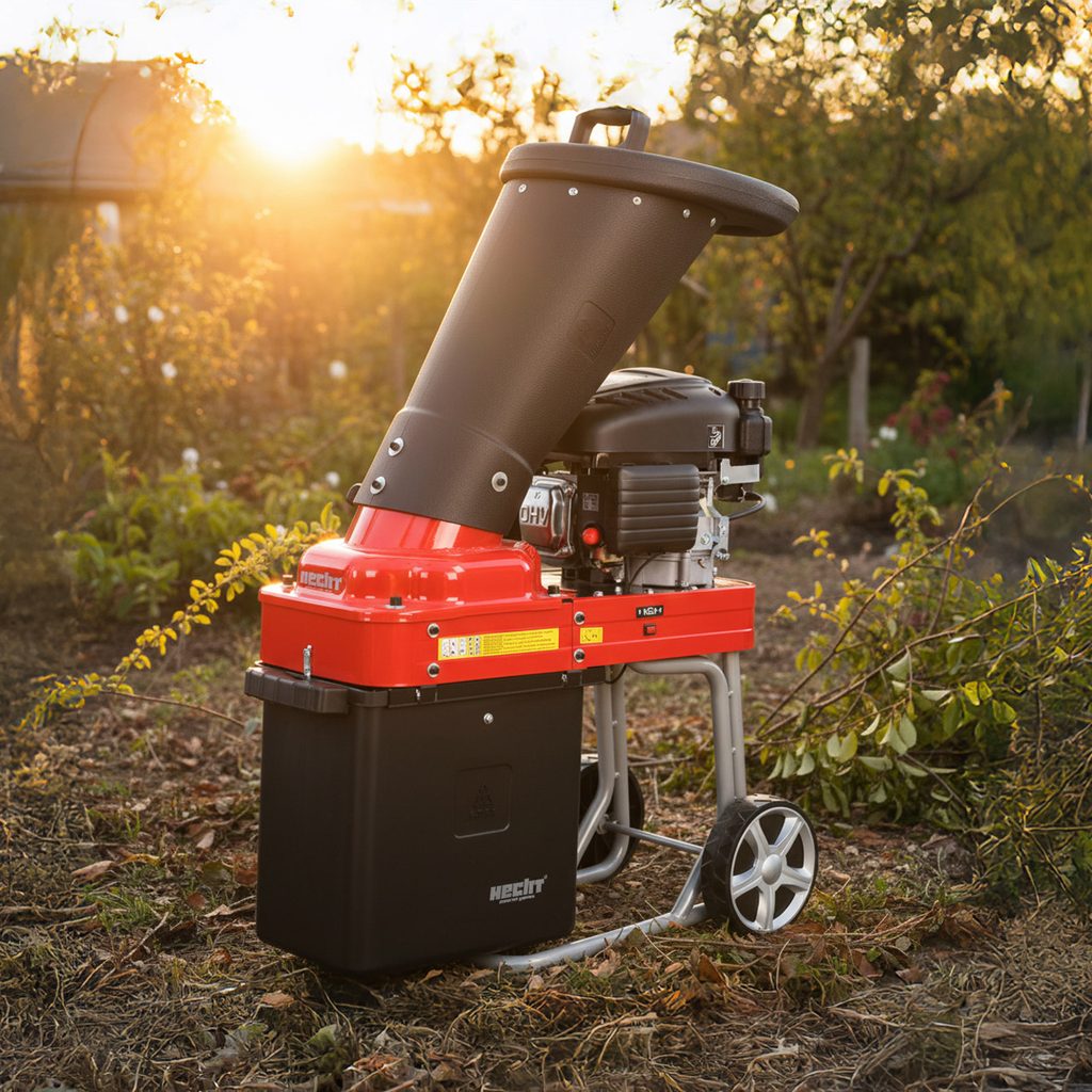 Garden shredder. Easy transport. Biowaste disposal with the possibility of his utilization. Powerful 4-stroke engine. Weight 45 kg.