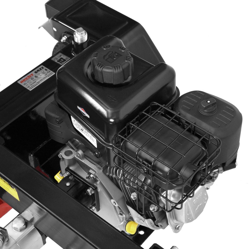 HECHT 6422 is a robust hydraulic wedge splitter powered by a Briggs & Stratton XR950 branded 208cc engine. It is mounted on a chassis with a drawbar for connection to a 50 mm ball hitch. This makes it possible to attach it behind, for example, ATVs, tractors and other vehicles equipped with a suitable towing device. The wheels are fitted with 16" (4.8 x8) tyres. The maximum speed is 75 km/h. Weight is 246 kg. The splitter is not certified for towing on public roads.