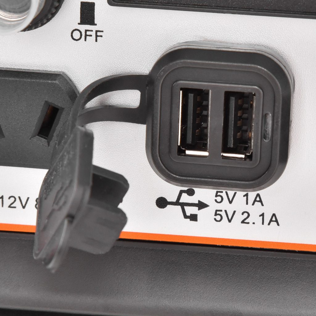 - 1x 230V socket, 1x 12V DC, 2x USB 5V